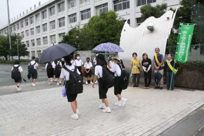 7月もあいさつで明るい地域づくりを 公開日 2024/07/01 更新日 2024/07/01 全校生徒 7月(文月)に入りました。まだまだ梅雨が続きます。今日は朝から民生委員の方が校門に並んで挨拶活動を行っていただきました。月曜日ということもあり、生活委員のあいさつ運動と一緒に朝から明るい挨拶が門に響いていました。地域の方と共に明るい猿投台地区にしていきたいです!