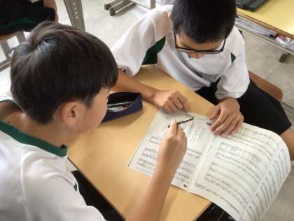 合唱コンクールに向けて【1年生】 公開日 2024/07/02 更新日 2024/07/02 1年生 1年生は、10月の合唱コンクールのクラス曲が決定しました。 今日は、指揮者や伴奏者を決めたり、クラスのテーマを考えたり、楽譜を作ったりと合唱コンクールに向けて、各クラス話し合いや準備が進められていました。あるクラスでは、指揮の振り方をみんなで練習していました。 まだまだ準備が始まったばかりですが、10月にどんな合唱となるのか、とても楽しみです!