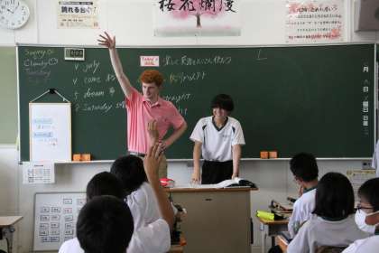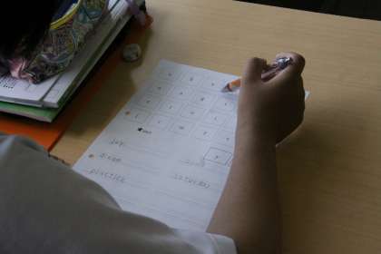 Go straight!【1年生英語科】 公開日 2024/07/09 更新日 2024/07/09 1年生 1年生の英語では、「命令形」の学習をしています。ALTや級友の出す命令に従って、プリントの地図の上を進み、示されたアルファベットから英単語を探します。英単語の予想がつくと一斉に手が上がっていました。アクティビティがあると学びにも集中できますね。