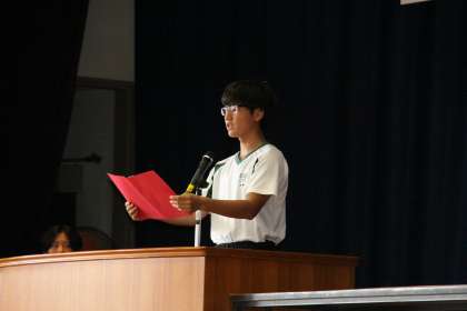 各学年から代表生徒が意見発表を行いました。どの生徒も学校生活や行事、部活動を通した経験から成長したことを語りました。これから夏休みに入りますが、この期間でしかできない経験からさらなる成長を遂げてもらいたいです。
