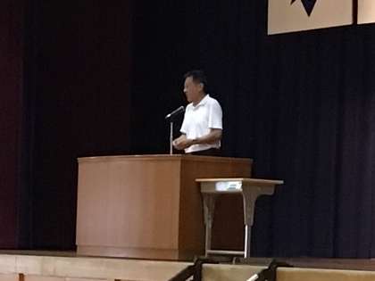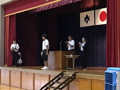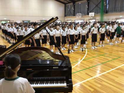 全校集会 公開日 2024/09/02 更新日 2024/09/02 全校生徒 授業前に全校集会を行いました。部活動の表彰と、校長講話がありました。講話ではパリオリンピックの話を交えながら努力をし続ける大切さを話されました。体育館に響く全校で歌う校歌を聴き、生徒達が戻ってきた実感が得られました。