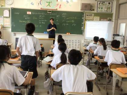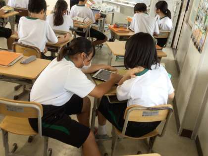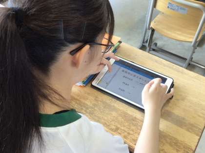 1年生の英語の授業では、タブレットを使って、期末テストの要点を復習していました。