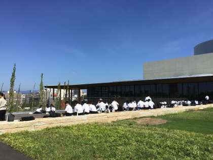青空の下でお弁当(2年生博物館見学) 公開日 2024/10/01 更新日 2024/10/01 2年生 見学の後はお弁当。中でエアコンが効いた場所も選べましたが、生徒たちは野外一択でした。素敵なお弁当がたくさん見られました。保護者の皆さん、ありがとうございます!