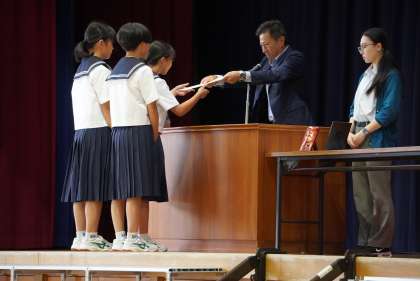 今日から後期です。後期始業式に合わせ、各種表彰と、任命式が行われました。表彰式では、文武に渡った成果を堂々と壇上で受け取っていました。任命された生徒たちは任命状を受け取り、自らの立場を再確認していました。