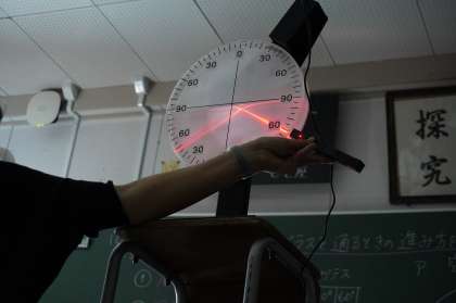 1年生理科は「光の屈折」について学んでいます。生徒たち自身の実験後、結果の共有と振り返りのために教師が実験装置で見本を見せました。その時の生徒たちが食い入るように見る眼が印象的でした。こんな表情となる授業をいつも行っていきたいです。