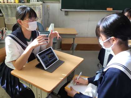 3年生総合発表会 公開日 2024/11/08 更新日 2024/11/08 3年生 修学旅行での新発見や学んだことについて、3年生から2年生に向けて発表会を行いました。最初はお互いに緊張していましたが、発表が進んでいくと笑顔が増え楽しく発表をすることができていました。3年生のスライドには、2年生が楽しんで聞くことができるように行った場所についてのクイズなどたくさんの工夫が見られ、3年間で学んだことをたくさん発揮できました。