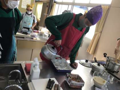りんごの皮剥きから、リンゴジャム作り。それと並行して、ジャムを入れる瓶の煮沸消毒。様々な工程を班で協力し、役割分担をして行います。
