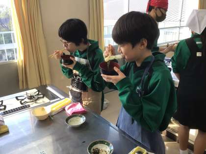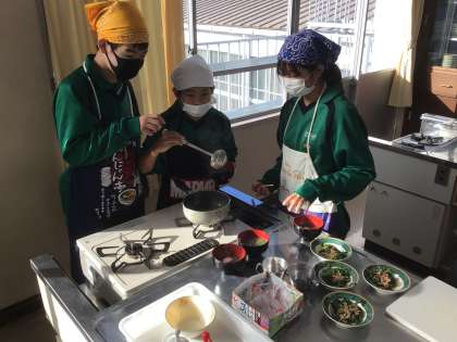 今回は「愛知のお雑煮」と題し、愛知県の地域性が出るを作っていました。クリスマスが終われば、あっという間にお正月がやってきます。お家で食べているお雑煮との違いを感じている生徒もいれば、お雑煮が初めてという生徒もいました。地域の特性が出る料理のお雑煮。美味しくできましたか?