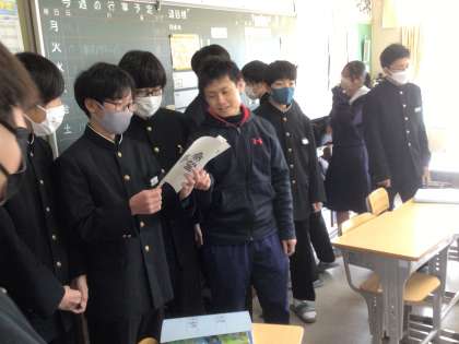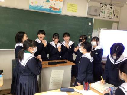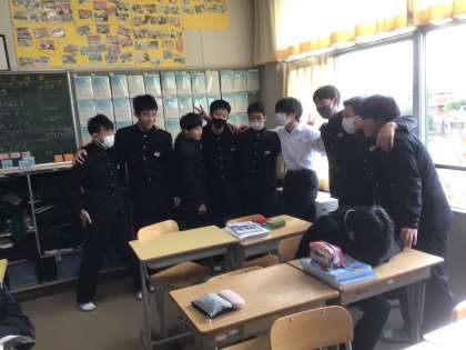 2年生が、自然教室時に実施する立志式で歌う「ありがとうの輪」を練習しているのです。肩を組んで気持ちを込めて歌っている生徒もいれば、歌詞の意味を考えながら歌っている生徒もいます。聞いているこちらがグッとくるものがあります…。自然教室でみんなの本番の歌を聴くのが楽しみです!