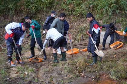 冬季という事もあり、緑豊かな自然というわけではなかったのですが、そこに息づく生物や自然を感じることができました。普段やらない力仕事や、環境整備に1時間ほどに時間でしたが、どの子も一生懸命汗を流していました。終わった後には「また来たい!」と多くの生徒が言っていました。