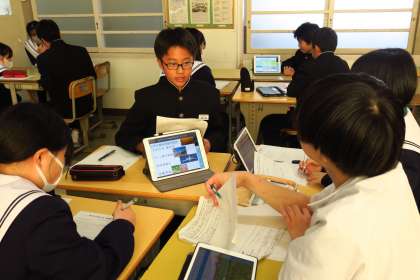 今日は班の中で発表し、班の代表を決めました。先週から発表の練習が行われましたが、みんな自分の考えを伝えるために工夫を凝らしていました。