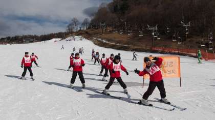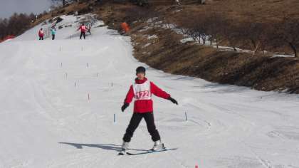 【2年生自然教室】2日目スキー研修(午前)その2 公開日 2025/01/20 更新日 2025/01/20 2年生 生徒たちがもの凄いスピードで上達しています。 昨日が初めてのスキーだったという生徒でも、みんなで1列になって滑ったり、ボーゲンでターンができたりしています。 今後のさらなる成長が楽しみです。