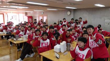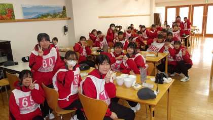 最終日の朝食です。今日も生徒たちは元気いっぱい。 最後のスキー研修を頑張ります!