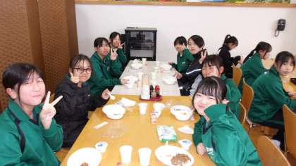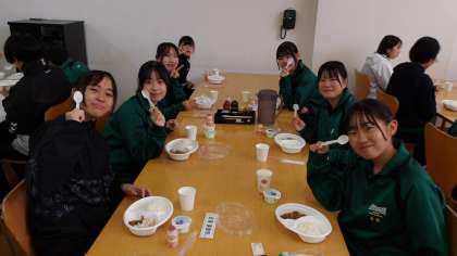 美味しいごはんに、生徒たちは笑顔いっぱいです。