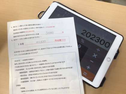 自分のなりたい職業の初任給を調べて、自分が必要だと考えた生活費と比較すると、生活が大変になることに愕然とする生徒もいました。