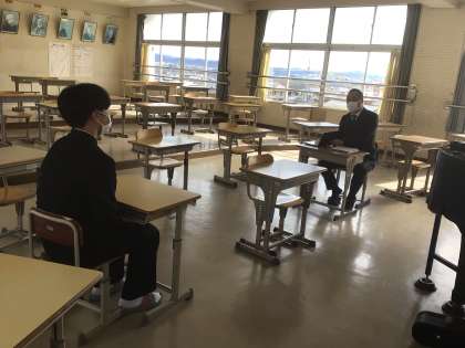 教育相談【1・2年生】 公開日 2025/02/12 更新日 2025/02/12 全校生徒 先週からテスト週間に入ると同時に、教育相談が行われています。 事前のアンケートをもとに、勉強や友人関係、その他さまざまな不安や悩みを担任が聞きます。今はテスト前とあって、勉強についての相談も多いようです。 学校と保護者、ともに生徒の育成を支えていきます。ご協力のほどよろしくお願いいたします。