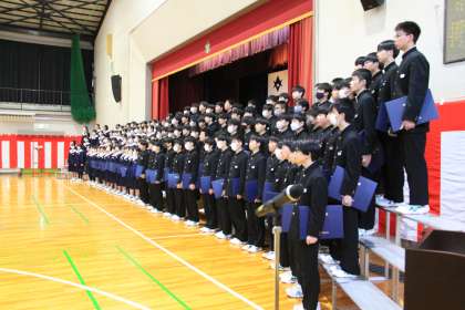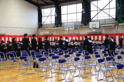 予行練習 公開日 2025/03/05 更新日 2025/03/05 全校生徒 卒業式予行練習を行いました。本番に近い形で行う全校生徒で最後の練習。練習ではありましたが、感動的な練習でした。今日は省略した送辞、答辞が入ることで気持ちが最高潮のものとなると思います。
