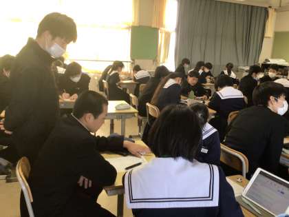 今日の2年生の総合的な学習は、修学旅行に向けて東京と豊田の「魅力」を発見し、比較していました。