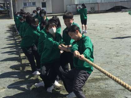 学年レク【1年生】 公開日 2025/03/19 更新日 2025/03/19 1年生 1年生の企画委員が企画した学年レクを行いました。 だるまさんが転んだや人数合わせゲーム、綱引き、クイズなど、様々なステージが準備されており、勝者が勝ち進んでいく形で進められました。 1年生で行う最後の学年レク。みんな、楽しめたようでよかったです。