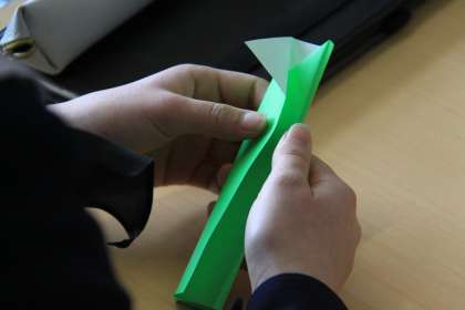 1年のまとめ【1年生英語科】 公開日 2025/03/21 更新日 2025/03/21 1年生 今日で授業は終わります。各教科の授業は、1年で学習した内容を様々な形でまとめていました。ALTが折り紙で「箸袋」の作り方を英語で説明します。その言葉に沿って完成させたり、クイズ出題アプリを使ってクラス内で競ったりしていました。この1年で英語力はどこまで上がったかな?