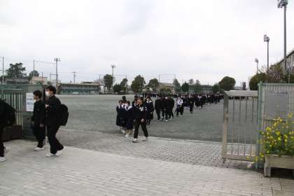 通学団会が開かれました。中学校は小学校と違い、集団での登下校をしませんが、通学路は決められています。通学路の確認と、その道の危険個所などを通学団で集まり確認します。1年間事故のない登下校を心がけてください。