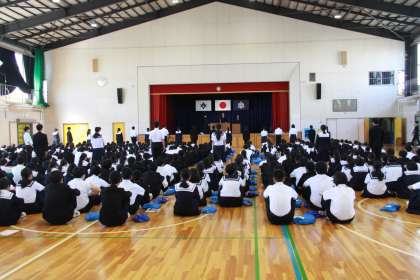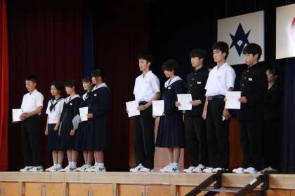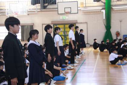 役割をもって【生徒会認証式】 公開日 2025/04/24 更新日 2025/04/24 生徒会 各種委員会の委員長や、学級の級長、書記、議員の認証式が行われました。どの子も与えられた役割に責任を感じていることが表情に表れていました。半期の間、よろしくお願いします!