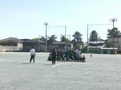 運動場中央ではクラスアピールの練習をしていました。音楽に合わせて動きを確認していました。