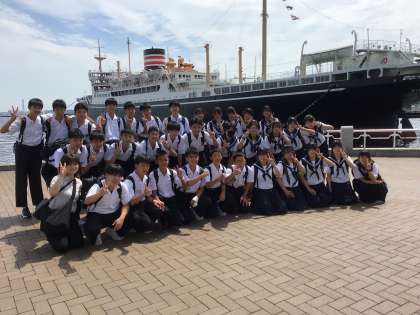 2組は横浜の山下公園で集合写真、今から中華街へ向かいます。