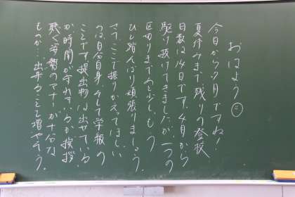 月に入りました。令和7年も後半に入ります。今月は18日まで過ごせば夏休みとなります。暑さに負けず、夏の準備に取り掛かっていきましょう。