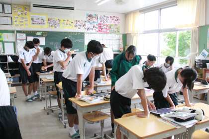 選挙を前に【3年生社会科】 公開日 2025/07/18 更新日 2025/07/18 3年生 3年生社会科の授業でも時事に触れるという視点で、20日に投開票される参議院選挙が話題となっていました。選挙マッチングアプリが紹介され、今回の選挙の争点となっていることなどが話題となりました。彼らにはまだ投票権がありませんが、政治に関心を持つことは大切なことです。自分の意思を一票にのせて投票に行きましょう!