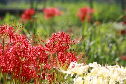 9月最終日【学校の風景から】 公開日 2025/09/30 更新日 2025/09/30 各種行事 9月が本日で終わります。9月始まりは酷暑が続いていましたが、ようやく秋の風に代わってきました。例年より1週ほど遅くなりましたが、花咲き山の彼岸花が見ごろを迎えています。多くの生徒が東門を利用するため、西門の風景を知りません。少し足を延ばし、校内の季節の変化を見つけられるといいですね。