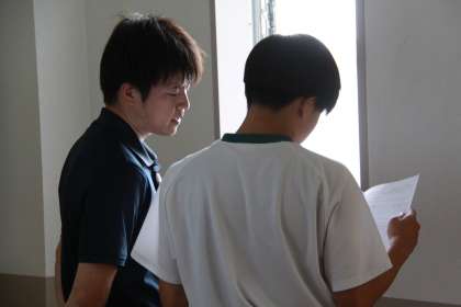 前期を振り返って【前期終了学級活動】 公開日 2025/10/10 更新日 2025/10/10 全校生徒 今日で前期が終わります。学級活動の時間に前期の通知表が生徒に手渡されていました。前期の頑張りを伝えたり、後期何をがんばったらよいかのアドバイスが送られたりし、笑顔や真剣な表情が各教室で見られました。3連休を挟み、後期となります。後期の頑張りを期待します。