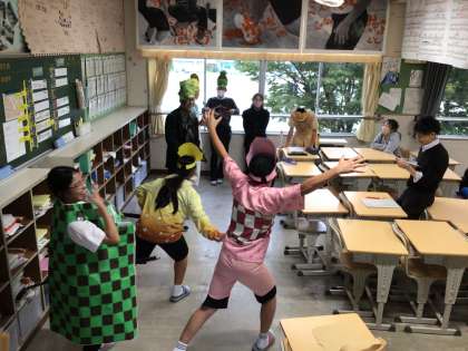 教室では劇の練習をしているスタッフがいました。衣装を着て全力で表現していました。スタッフの活気ある活動に文化祭が近いと実感しました。