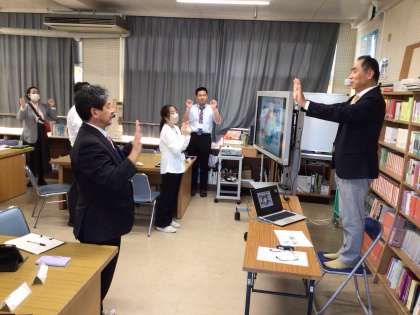 テスト週間の午後を活用して、教員の研修を行いました。日本ペップトーク普及協会の三森啓文氏を講師にお招きして、言葉の力で、生徒も教師も前向きスイッチ ON!〜ペップトークで、もっと明るく、もっと元気に〜をテーマに学びました。ペップトークとはアメリカのプロスポーツの世界で活用されているスピーチの手法で、試合直前の選手を活気づける激励のショートスピーチです。短く分かりやすい表現に特徴があります。小中学校で採用されている337拍子の紹介や、本校の校訓「純真・敬愛・希望」をテーマにした337拍子を三森講師が自作し紹介したりして、1時間半の研修があっという間に終わりました。
