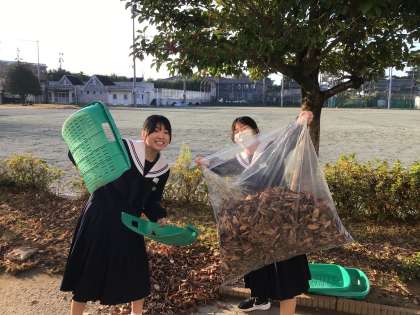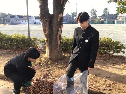 3年生企画委員の発案で、朝から落葉掃きを有志のボランティアで行っていました。朝早くから箒を掃く音が校舎の前に響いていました。