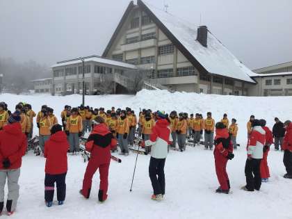 22名のインストラクターさんの自己紹介がありました。このスキー場で育った選手が冬季オリンピックに出場する予定だそうです。雪質もコースも優れたスキー場だそうです。2時間の午前中の実習でどこまで上手になれるか、楽しみです。