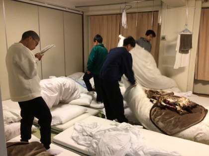 最終日の朝です。昨日のスキー実習の疲れでしょうか、疲れている様子が見られます。布団シーツの片付けと持ち物の整頓を進めています。今日の高山市街地の天気予報は曇り・晴れです。