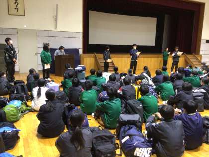無事室内点検を終え、行動に集まりました。所員の方のお話を伺い、代表生徒からお礼の言葉が述べられました。所員の方が、充実していましたか、と質問されると、ほぼ全ての生徒が元気よく手を上げていました。