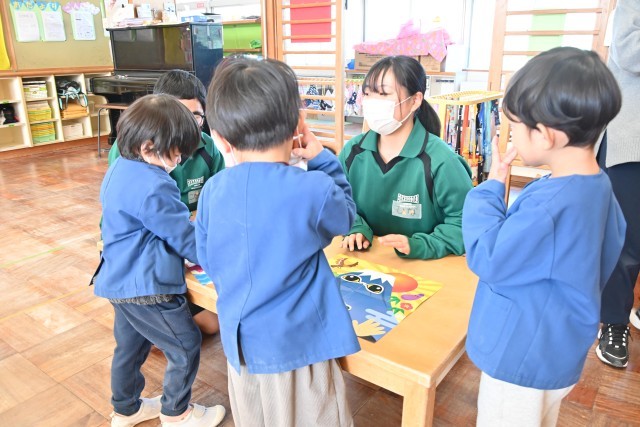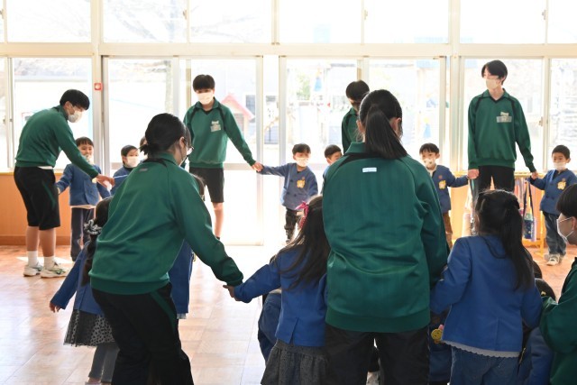 1月27,28日に家庭科の保育実習で、隣の青木幼稚園に3年生が訪問しました。自分よりはるかに小さな園児との触れ合いに、自然と優しい笑顔となる子や、緊張する子など、様々でした。いつか親となった時のために気持ちの準備ができたでしょうか?
