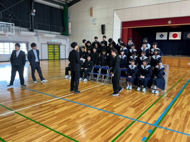 2時間目の後に職員が体育館に集まりました。卒業アルバム用の職員写真を撮影しました。
