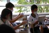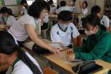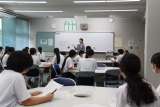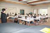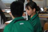 隣の席の生徒と、小さな紙の順番を入れ換えて文を作っていました。完成したところで...