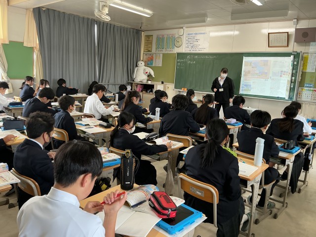 1年生の社会科の授業を参観しました。世界の国の数を予想したところ、たくさんの意見...