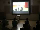立志式です。 14年間をスライドショーで振り返り、年の数の蝋燭に校長先生が火を灯...