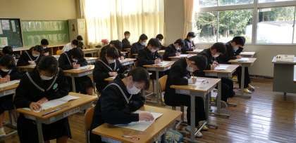 1年生は、これからの学校生活で大切にしたいことをしっかり聞いていました。3年生は、学力検査に集中して取り組んでいました。