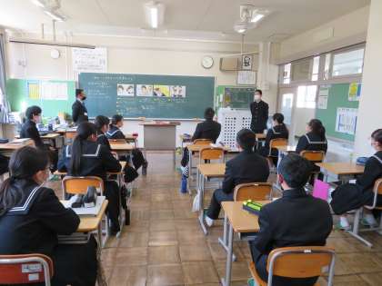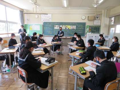 1時間目に2年A組で道徳の授業を教務主任の清水先生が行いました。多くの教職員が参観し、勉強しました。2年A組の生徒は、自分の考えをしっかりと発言できていて立派でした。