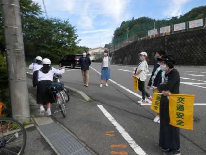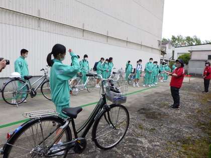 この時期の貴重な晴れ間を見せた本日、朝の登校指導や、運動場でのダンス練習など屋外活動が活発に行われました。1学年は5,6限で、自転車安全運転講習会があり、外で実施することができました。通学で利用する生徒以外、この地域ではあまり自転車で出かける人は少ないようですが、様々な交通場面で関わることはあります。正しい乗り方を知って歩行者の時も自動車に乗っている時も安全な行動をしたいですね。