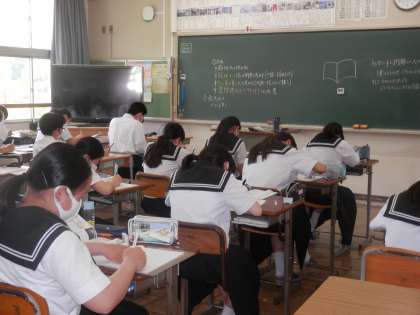 明日から前期中間テストが始まります。今日は多くの教科で復習やテスト勉強に取り組んでいました。何度も繰り返し問題を解いたり、生徒同士で教え合う姿はとても立派です。