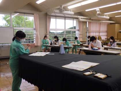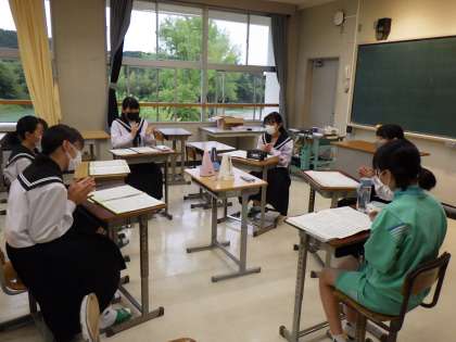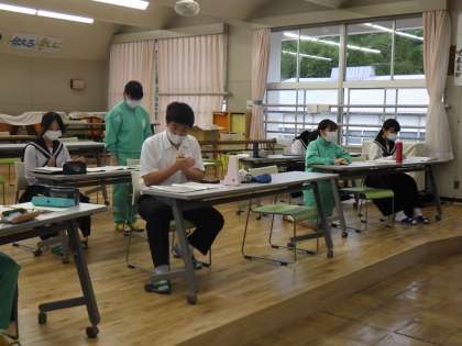 吹奏楽部は合奏ができない環境の中でも、コンクールに向けて前向きにがんばっています。金管と木管パートに分かれて、手拍子で合奏しています。
