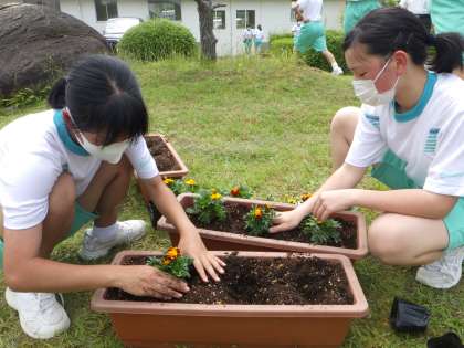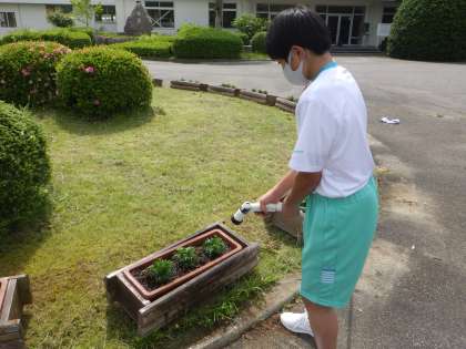 2年生はロータリーの花の植え替えを行いました。暑い中ですが、学校のために行動する姿はすばらしかったです。