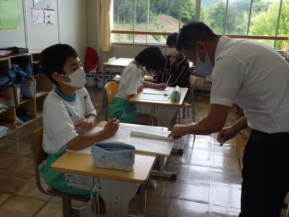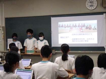 今日は総合の時間に、1年生は来週の校外学習の準備、2年生は職場体験のアポイント電話、3年生は修学旅行での下山紹介の練習を行いました。今後楽しみな行事の準備に励んでいます。3枚目はささゆり学級の数学の授業の様子です。がんばっています!